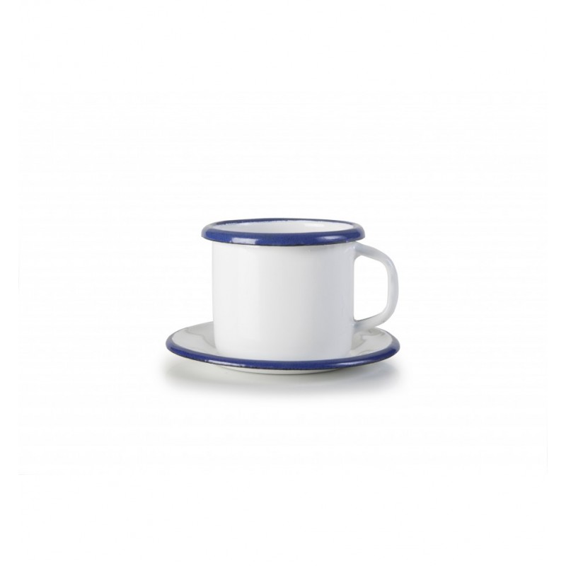Taza con Platillo Porcelana Blanca Borde Azul medidas, 5+8.5 Capacidad;0.075Litros