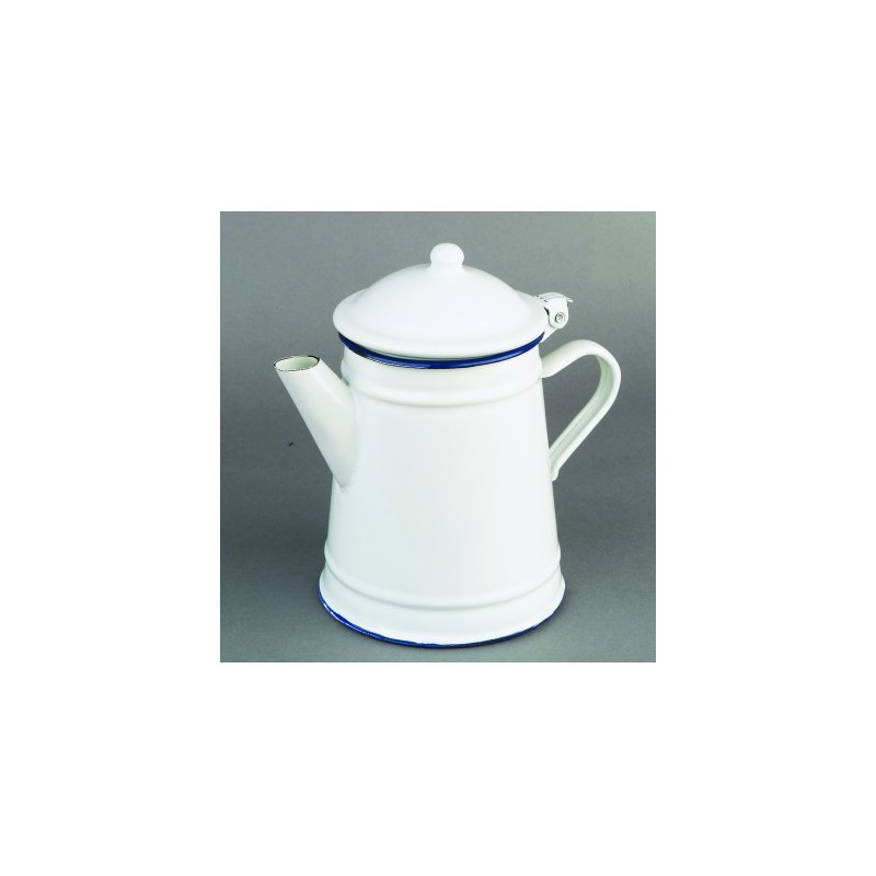 Cafetera Cónica 1 Litro Porcelana Blanca Borde Azul Ibili