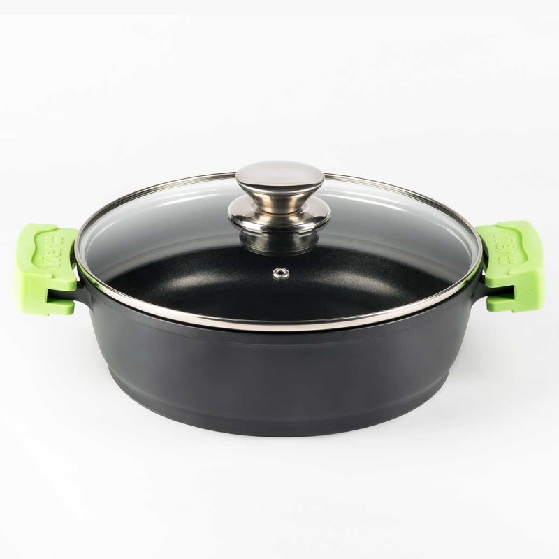 Tapa vidrio templado, con válvula de seguridad y pomo inoxidable.