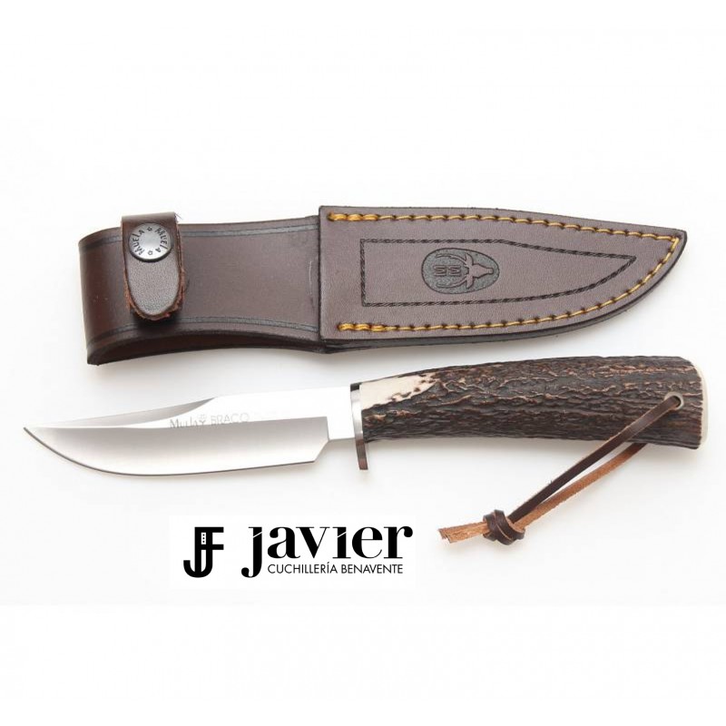 Cuchillo Braco 11A Muela. Cuchillo de 11 cts de hoja, mango de ciervo y funda de cuero de excelente calidad.