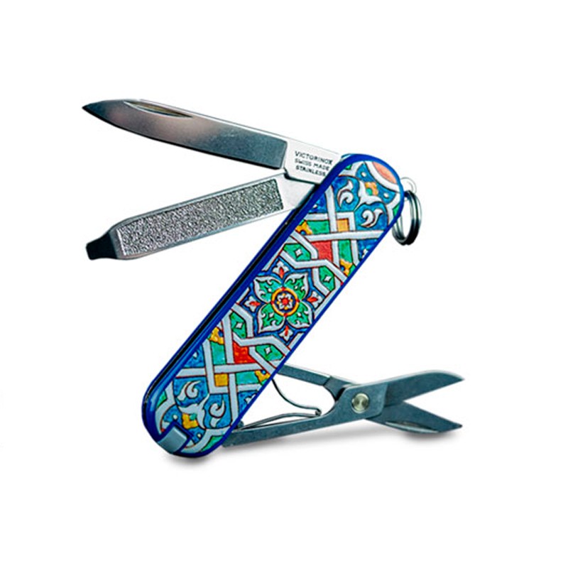 Victorinox nos sorprende con esta edición especial y exclusiva para España dedicada a los mosaicos de la Alhambra de Granada. Han utilizado una técnica de impresión en 3D que realza aún más los mosaicos reproducidos. Las fotografias son reales hasta el punto que se aprecian los "desconchones" de los azulejos.