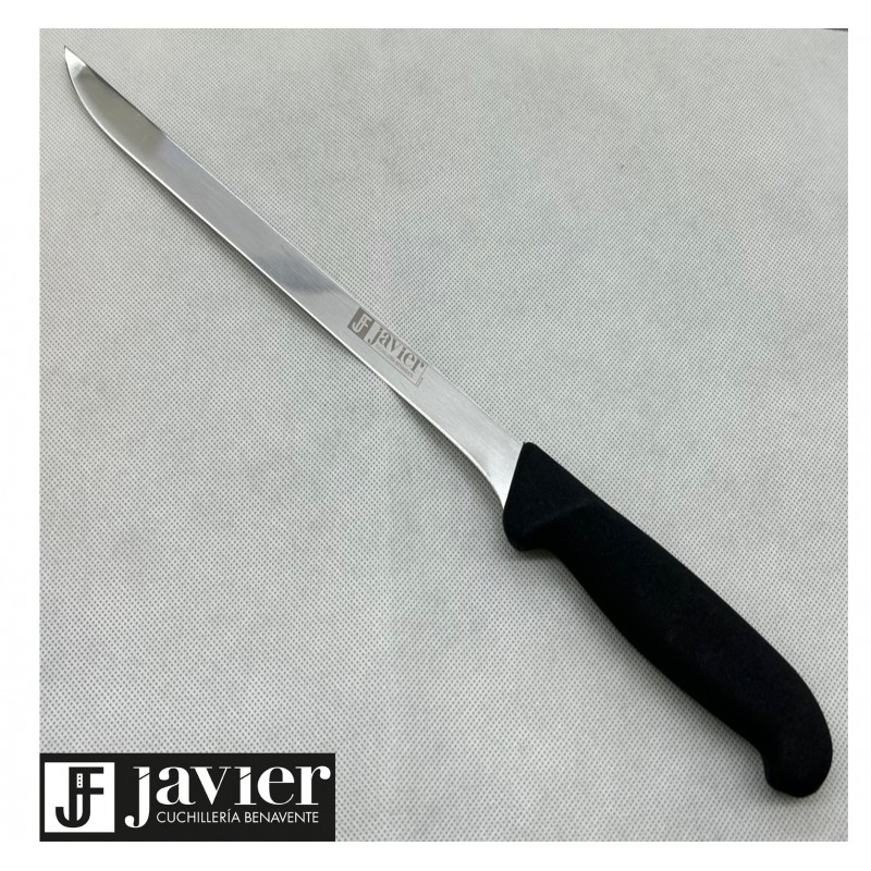 Cuchillo Jamonero de 25 cts de hoja y anchura aprox de 1,5 cts. Excelente calidad. Mango en fibra con grip antibacterias.