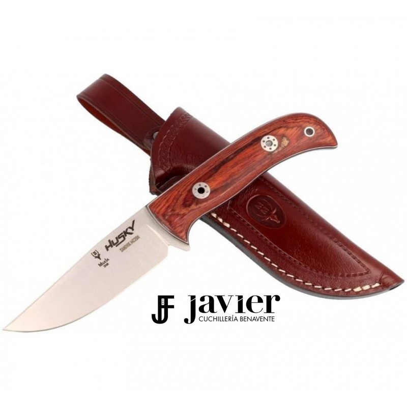 Cuchillo enterizo en Sandvik 14C28N y con las cachas en madera prensada Rose Wood.