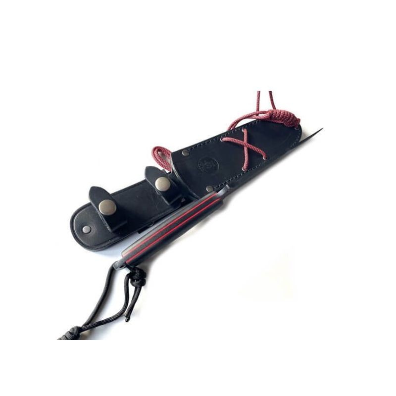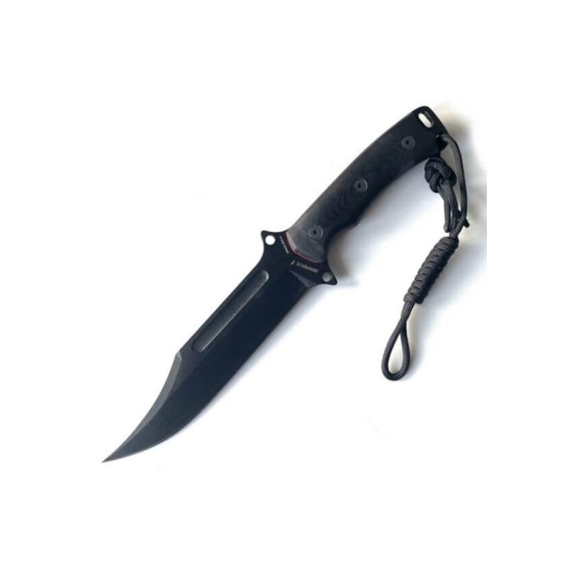 Novedad Cuchillo Semper FI. 1. modelo143. Cuchillo en acero bohler N690 cobalto PAVONADO EN NEGRO , amolado plano con canal en la hoja a dos caras , mango cachas en G10 negro, con agarre anti-deslizante ,atornillado con tornillos allen, tamaño de hoja 17cm mango 13cm, grosor 5,2mm, con funda de piel de primera calidad