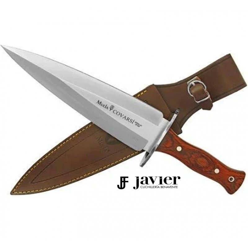 Cuchillo de remate con cachas madera prensada rosewood, defensa inoxidable, acero “Nitro-42”. Modelo Covarsi 24R.