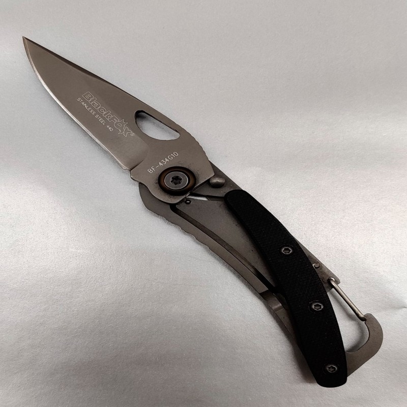 Modelo Negro--Navaja Italiana BLACKFOX 434G10 hoja de acero 440A de 6 cm y empuñadura de G10 negro de 8,5 cm.