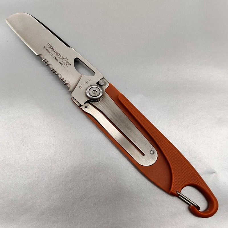 Modelo Naranja--Navaja Italiana BLACKFOX BF 810 hoja de acero 440A de 6 cm y empuñadura de G10 naranja de 10 cm.