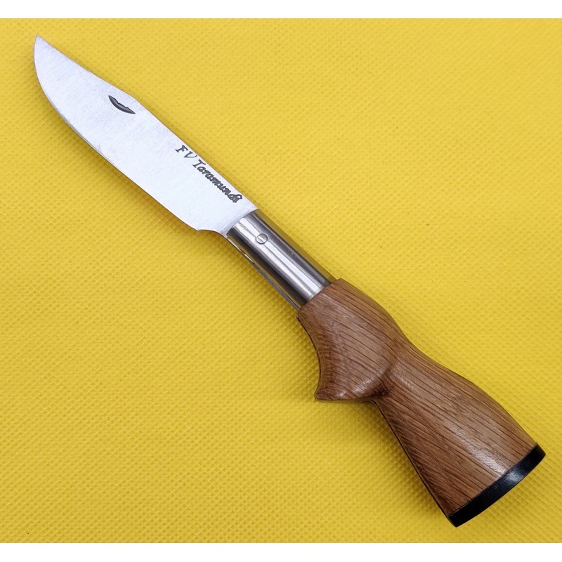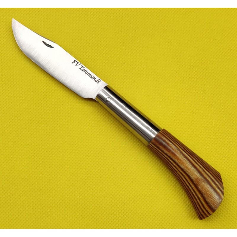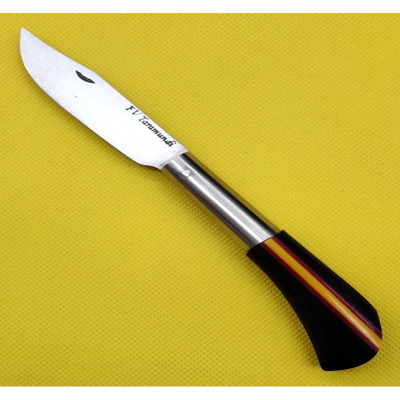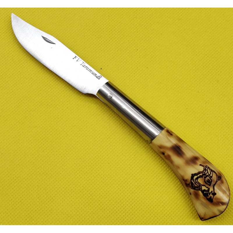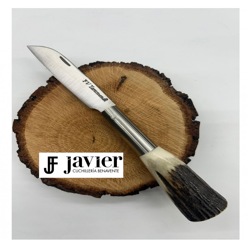 Navaja asturiana realizada de manera tradicional por el artesano Francisco Vega en Taramundi. Hoja de acero inoxidable Mova de 8 cm terminada en punta vuelta.