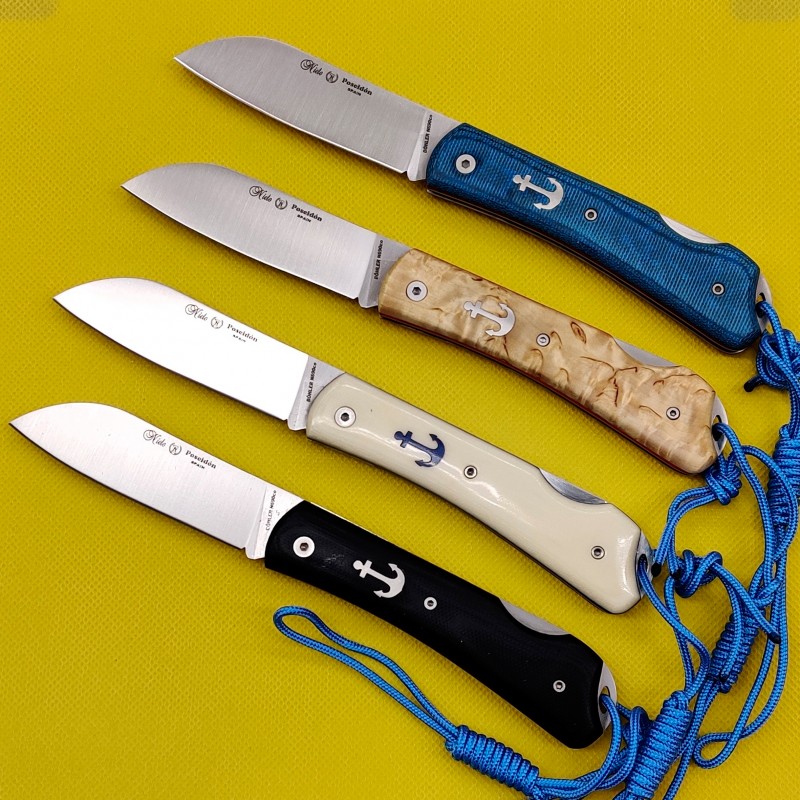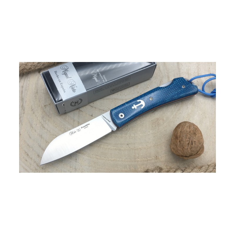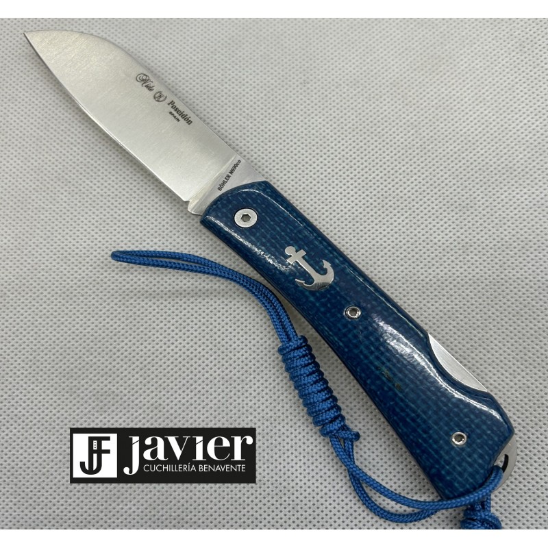 OFERTA FLASH!! NIETO POSEIDON!! PRECIO CON GASTOS DE ENVIO INCLUIDOS. Exclusiva navaja marinera de la marca Nieto, mango en Yute color azul, con separadores de fibra rojo y con incrustación del ancla de inox en el mango. Acero bohler N690 cobalto. Grosor de la hoja 3mm, muelles y forros pulidos. Sistema de cierre con bloqueo y tamaño de hoja 8 cts. Cordón fiador en color azul.