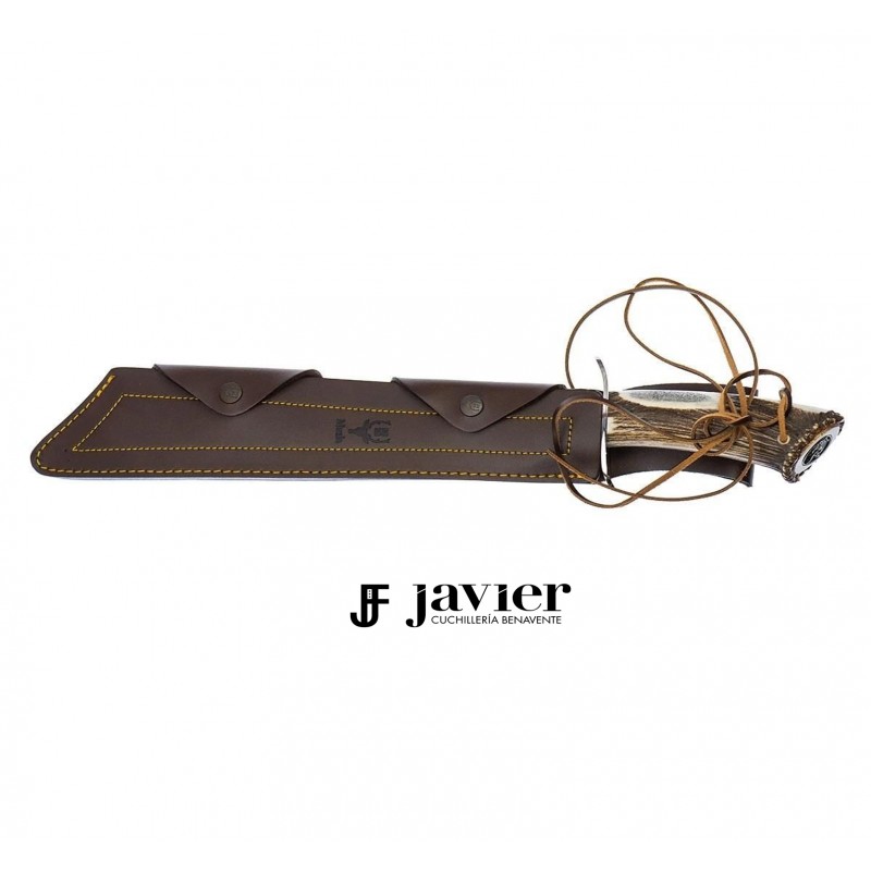 - Material de la empuñadura: asta de ciervo con roseta y cruceta de acero inoxidable