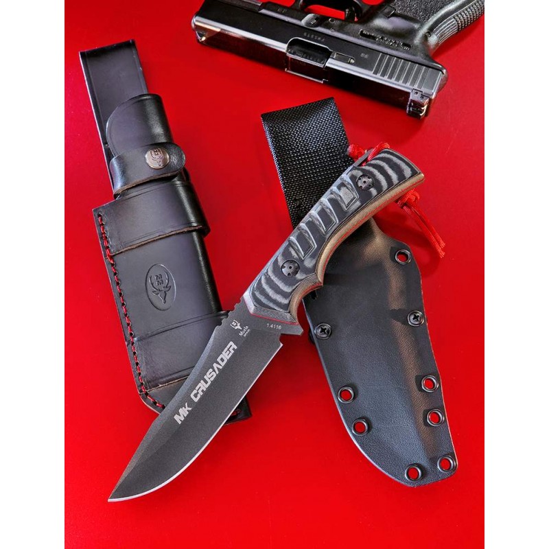 NOVEDAD, CRUSADER se presenta con la hoja con recubrimiento antifricción PTFE, que le da una resistencia extra ante la corrosión. Funda kydex, con sistema de apriete del cuchillo