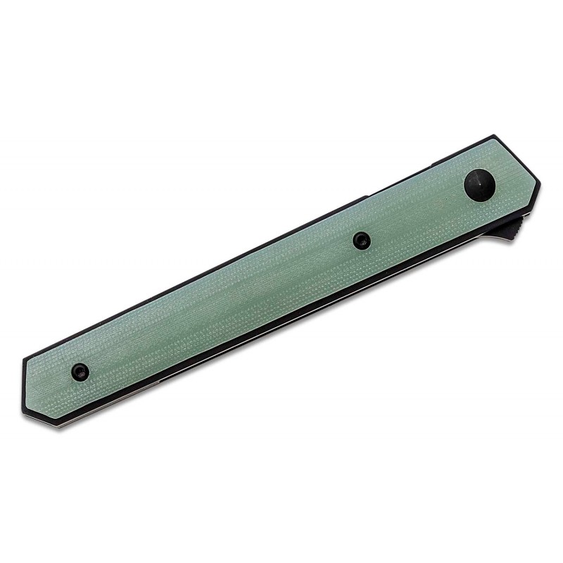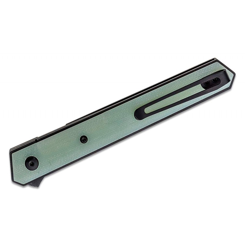 El diseño delgado y la elección exclusiva de materiales hacen del Boker Plus Kwaiken Air un elegante cruce entre una carpeta de caballero y un cuchillo táctico. Para hacer este puente aún más fácil, el Kwaiken Air Mini ofrece las mismas cualidades sobresalientes que su hermano mayor con dimensiones significativamente reducidas y, por lo tanto, más cómodas para el bolsillo. Con una forma sencilla y práctica, la moderna navaja de bolsillo se ha convertido en un verdadero ícono. Las líneas limpias y el diseño delgado se han optimizado aún más para reducir el peso sin concesiones en la versión liviana, aunque el cuchillo aún sostiene toda la hoja cuando está cerrado. El flipper garantiza un funcionamiento intuitivo y seguridad adicional, mientras que el linerlock bloquea de forma segura la hoja con cojinete de bolas hecha de VG-10 con revestimiento negro. La ligereza de la Carpeta Gentleman queda subrayada por las cachas del mango realizadas en Natural Jade G10, la variante original semitransparente del resistente material compuesto. Se suministra con un orificio para cordón, un clip de transporte profundo extraíble (tip-up/r) y una bolsa de nailon de alta calidad para el almacenamiento.Boker