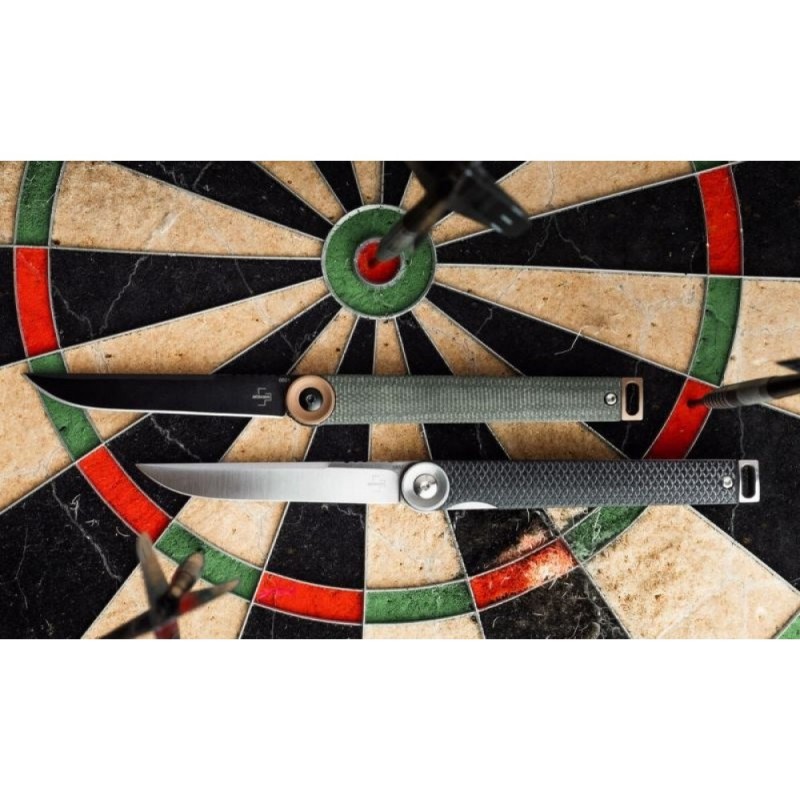 El Böker Plus Kaizen Green Canvas Micarta 01BO391 es una navaja delgada y liviana. El nombre y el diseño inmediatamente te hacen pensar en un diseño japonés. Abrir el cuchillo es bastante notable: funciona como una especie de aleta. Pero sin que la aleta sobresalga. Es más el agarre que tienes gracias a las estrías de agarre. Como tal, el cuchillo se ve muy limpio.