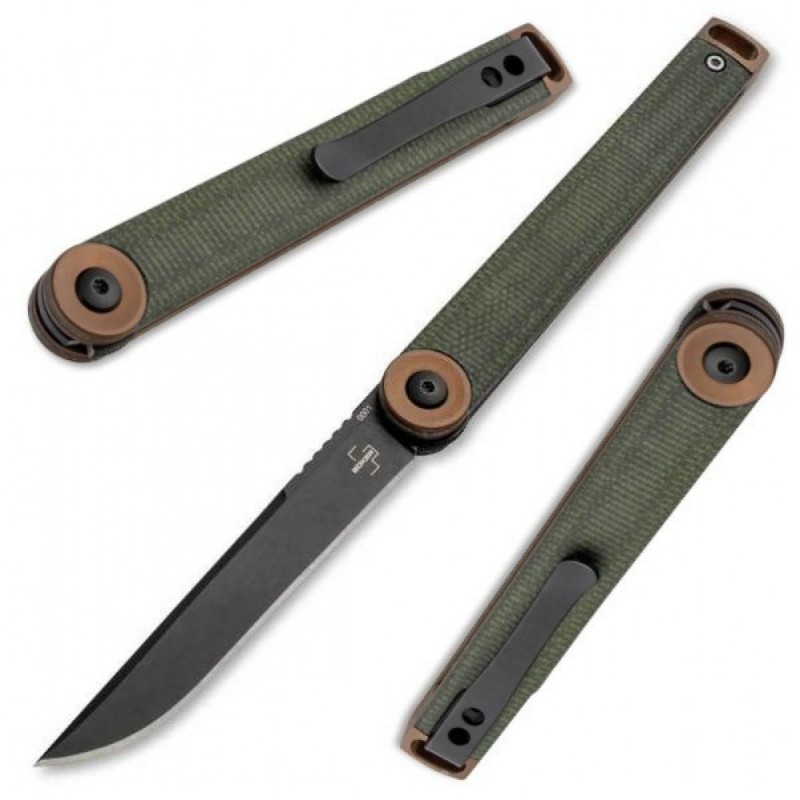 Novedad!! Navaja Kaizen de Boker plus en micarta canvas color verde. Hoja en acero D2.