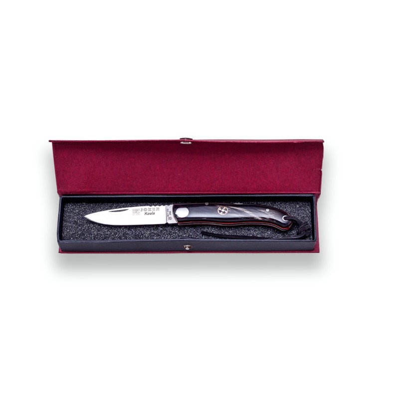Navaja con mango de búfalo y bloqueo. Modelo Koala NF124 de la empresa Joker de Albacete. Fabricación nacional.