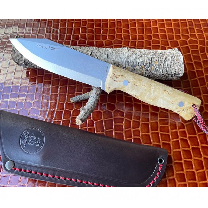 OFERTA PUNTUAL!! ULTIMAS UNIDADES DISPONIBLES. Cuchillo Nieto Chisquero, en varias terminaciones de mango (Seleccionar modelo en el desplegable). Hoja acabado scandi en acero 1.1416 y con funda de cuero en excelente calidad. Ya Disponibles!!!