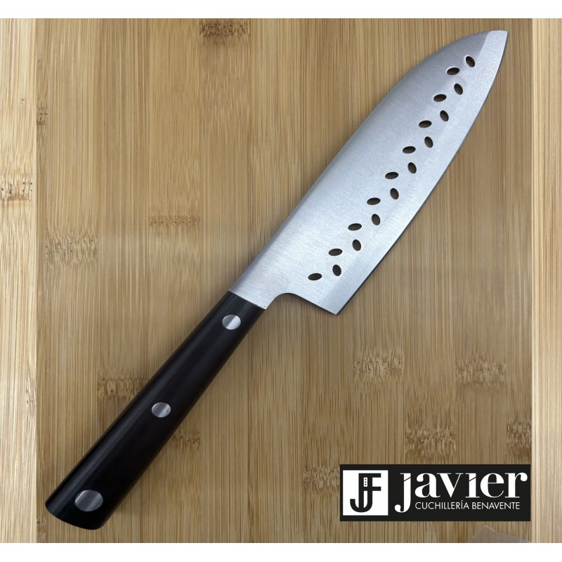 Novedad !! Cuchillo Japonés Santoku con hendiduras en el acero para evitar se adhieran los alimentos, sirve para filetear y hacer cortes precisos y profundos de pescado, otras carnes y aves.