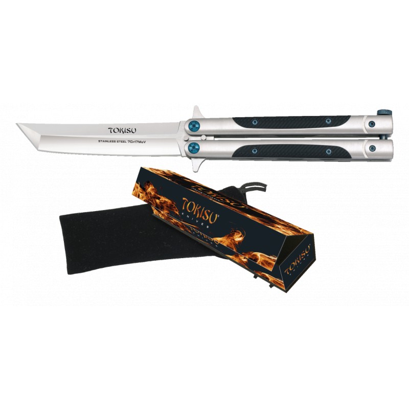 Novedad, navaja tokisu de abanico modelo 02198. Tamaño de la Hoja: 10.50 cm, Tipo de Mango/Color: Acero + G10