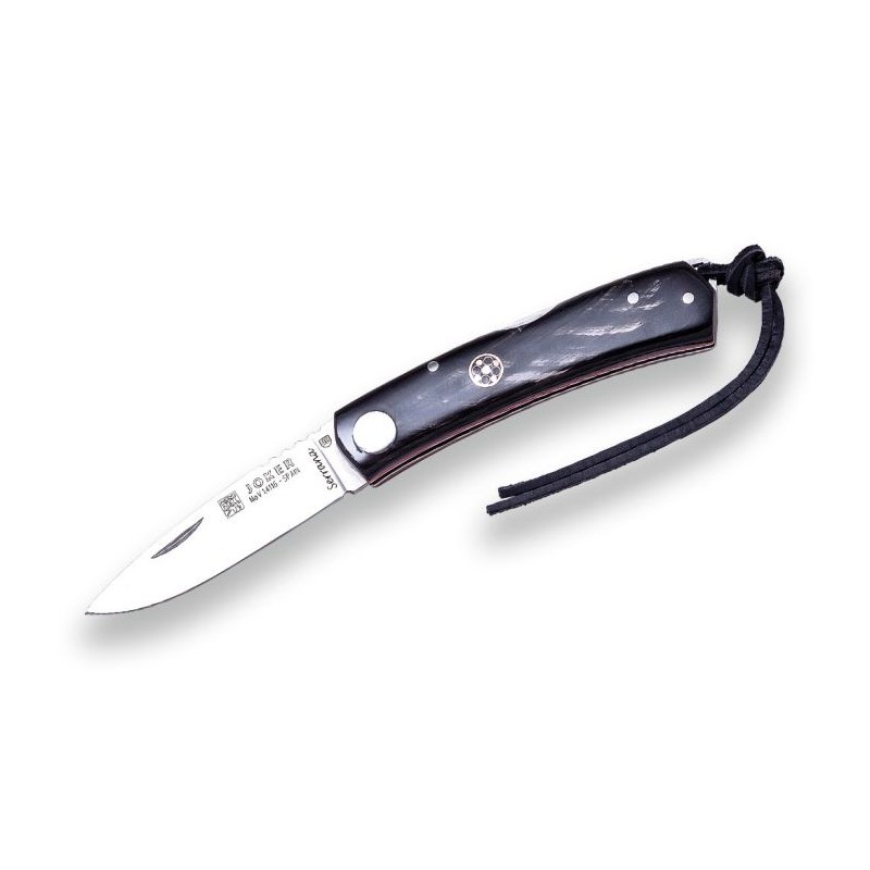 Navaja modelo NF-132 de Joker, en asta de Búfalo y cordón de cuero. Longitud de hoja 7 cts en acero MOva (1.4116) y estuche de presentación.