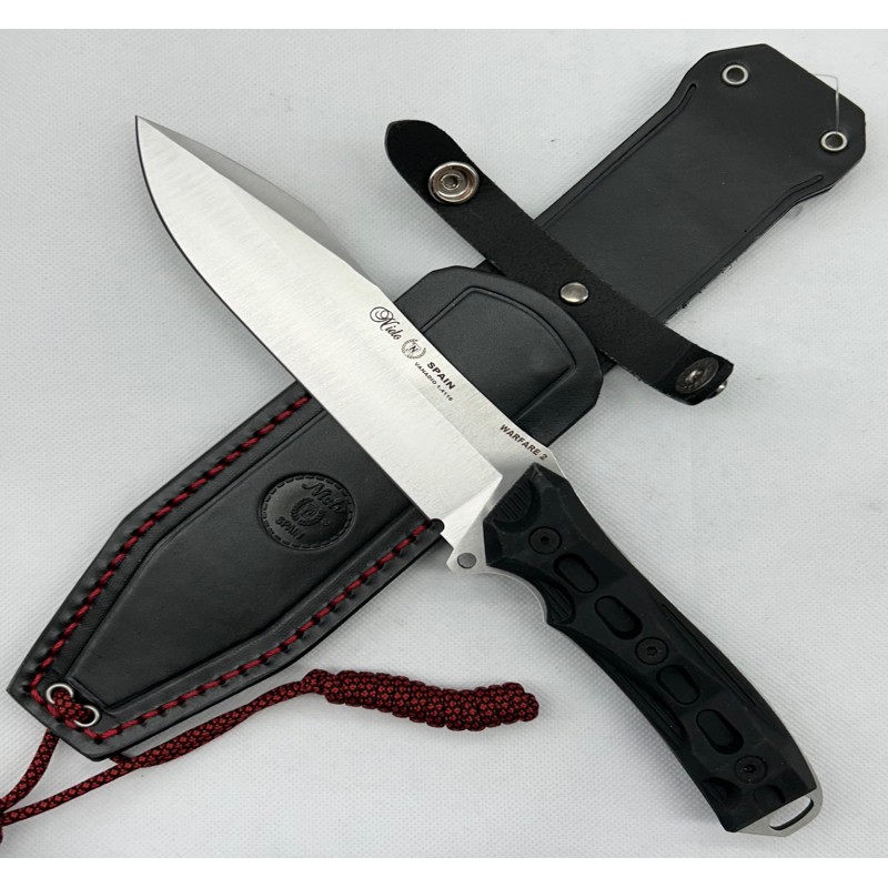 NOVEDAD!! Cuchillo Warfare 2 de Nieto. Disponible en varios mangos, seleccionar en el desplegable. hoja de acero 1.4116, mango de madera de olivo o bocote, atornillado, tamaño de hoja 16 cm, tamaño total 29 cm, ancho de pala 3,5 cm, enteriza con su funda de piel de primera calidad y paracord.
