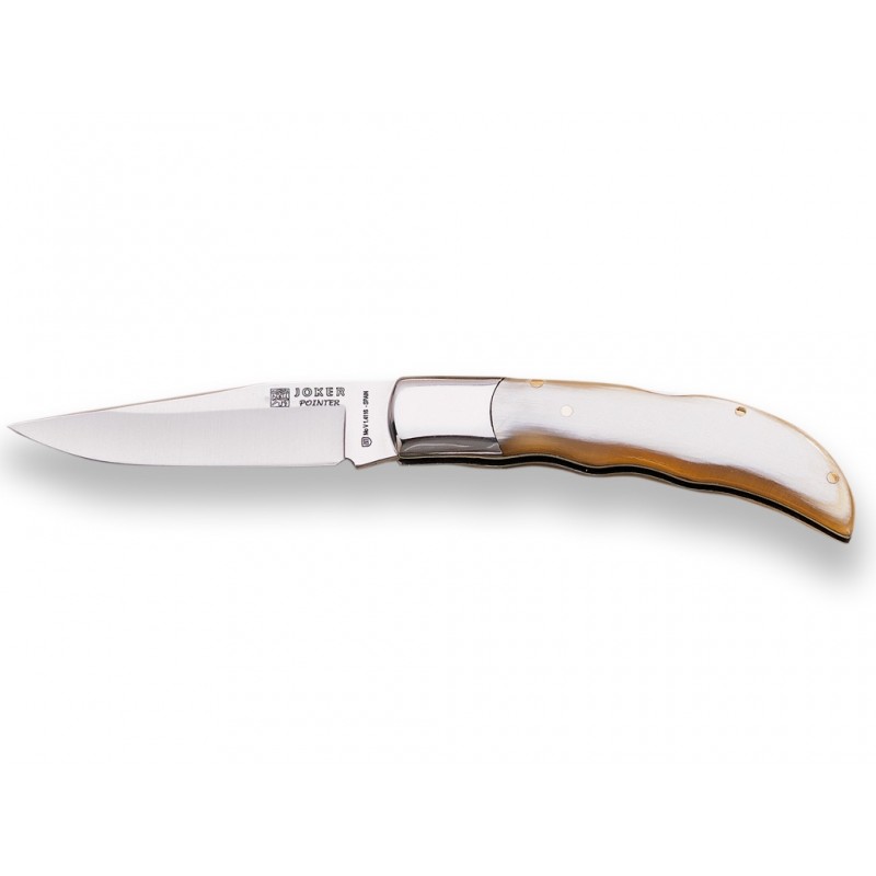 Navaja Pointer en Asta de Toro. Navaja artesanal con cachas de asta de toro y ranura de dedos. Disponible en dos tamaños.
