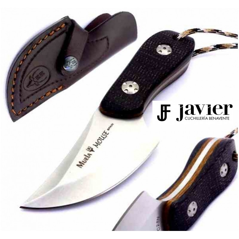 Novedad!! Mouse 7M de muela con hoja de acero inoxidable 14c28n y mango con cachas de micarta marrón. Incluye funda de cuero de calidad.