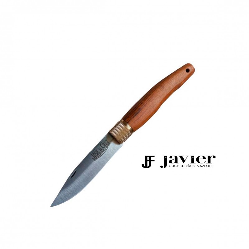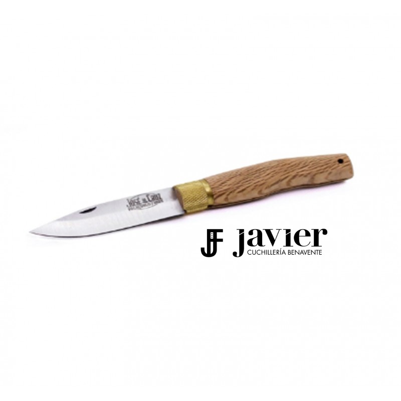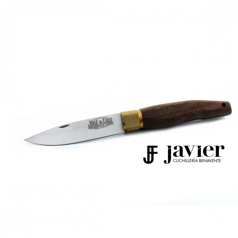 Modelo Planalto con punta, con hoja de acero mo-va, con uñero para abrir con mejor facilidad, con virola de latón, y mango en distintas maderas, con agujero para cordón fiador, sistema de cierre con virola giratoria de latón, tamaño de hoja de 8,5 cm, tamaño mango 10,5 cm, con caja de la marca.