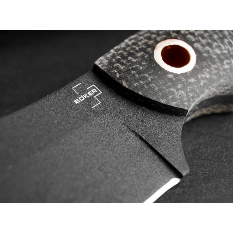 El práctico Böker Plus Nessmi Pro debe su nombre al aventurero estadounidense George W. Sears, que vivió en el este de Estados Unidos entre 1821 y 1890 y escribió libros y artículos de revistas sobre la vida en la naturaleza bajo el seudónimo de "Nessmuk". Para honrar su concepto de fabricar equipos para actividades al aire libre lo más ligeros posible, el cuchillero danés Jesper Voxnaes ha desarrollado esta versión particularmente compacta del cuchillo Nessmuk. El cuchillo, fabricado en D2 con una construcción de espiga completa , no solo es adecuado para uso al aire libre y para la caza, sino que también demuestra su eficacia en la vida cotidiana. Las cachas del mango de Micarta negra y el revestimiento de polvo negro de la hoja en forma de hoja le dan al Nessmi Pro un aspecto táctico, mientras que los remaches huecos de cobre añaden un acento colorido y también sirven como orificio para el cordón . Viene con funda de cuero negra.
