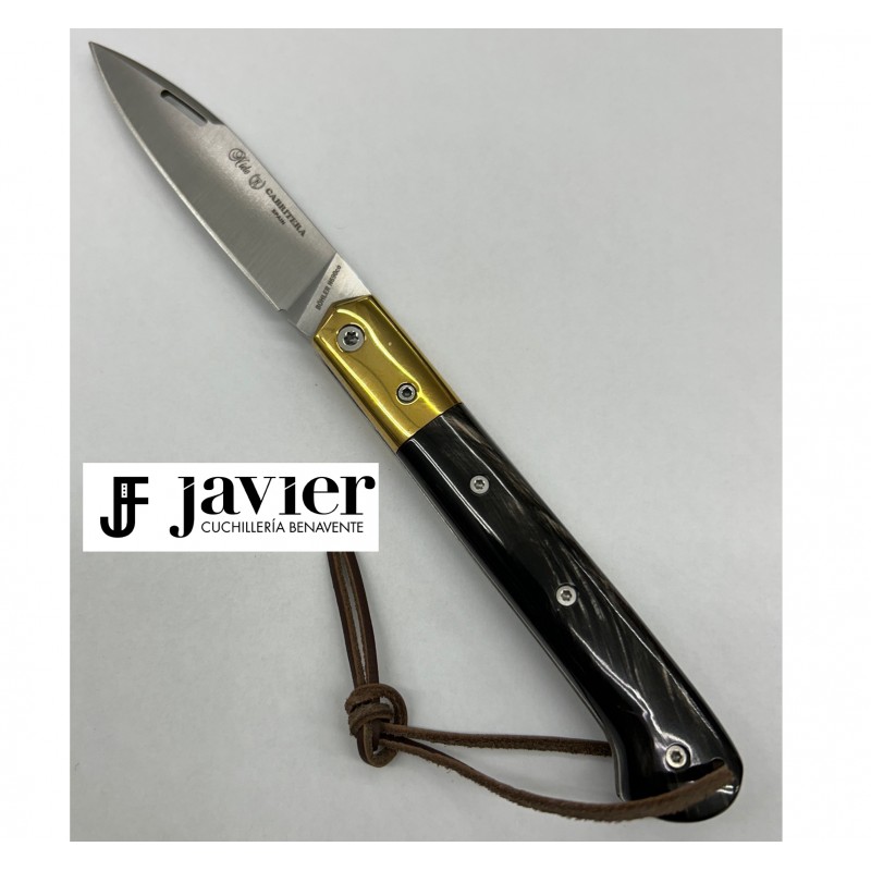 Navaja exclusiva de Nieto, cabritera en bufalo de agua y virola en laton.