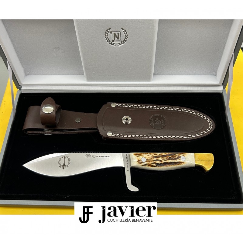 EXCLUSIVO cuchillo REPLICA DE LAS COE, en Ciervo y virola y culata en latón. Incluye estuche de presentación. Edición limitada, Grabada la bandera de españa en el anverso de la hoja.