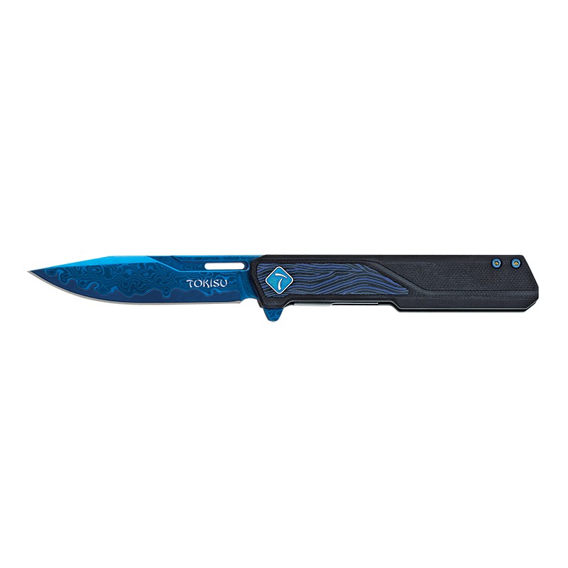 Novedad!! Navaja tokisu modelo 25020 en acero damasco de 67 capas con recubrimiento azul en titanio.