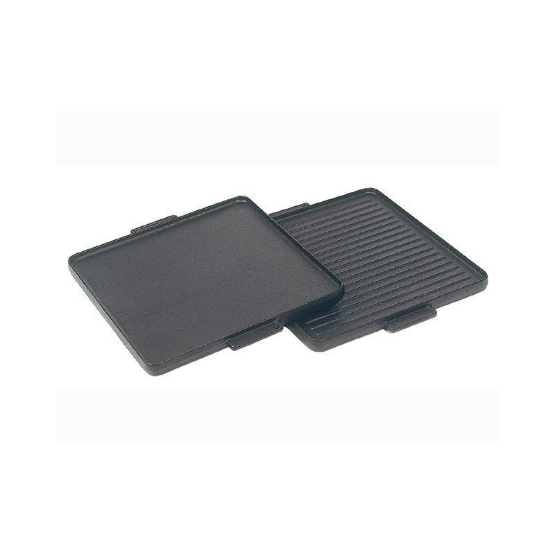 Plancha de hierro fundido reversible cuadrada de medidas 38 x 38 cm.