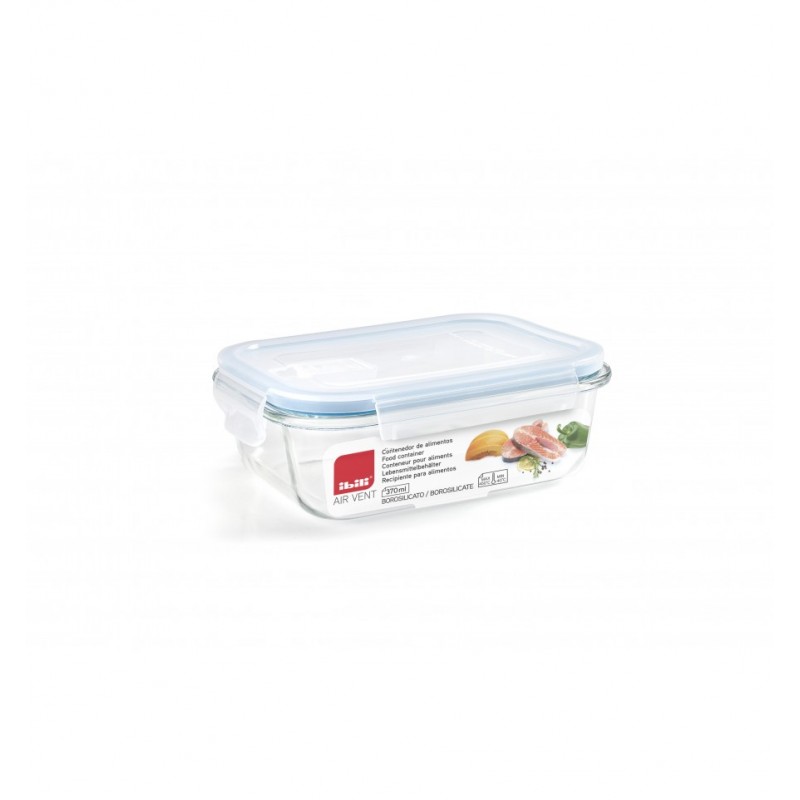 Contenedor de alimentos Air Vent rectangular. Borosilicato. Max. 450º - Min. -40º. Junta de silicona.
