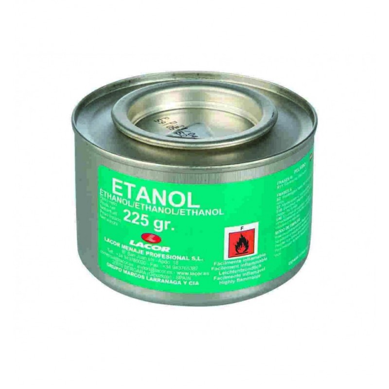 La lata de gel combustible etanol 225 gr de Lacor le proporciona 3 horas de duración, por lo que es adecuada para usos profesionales en restauración (chafing-dish, bufetts)