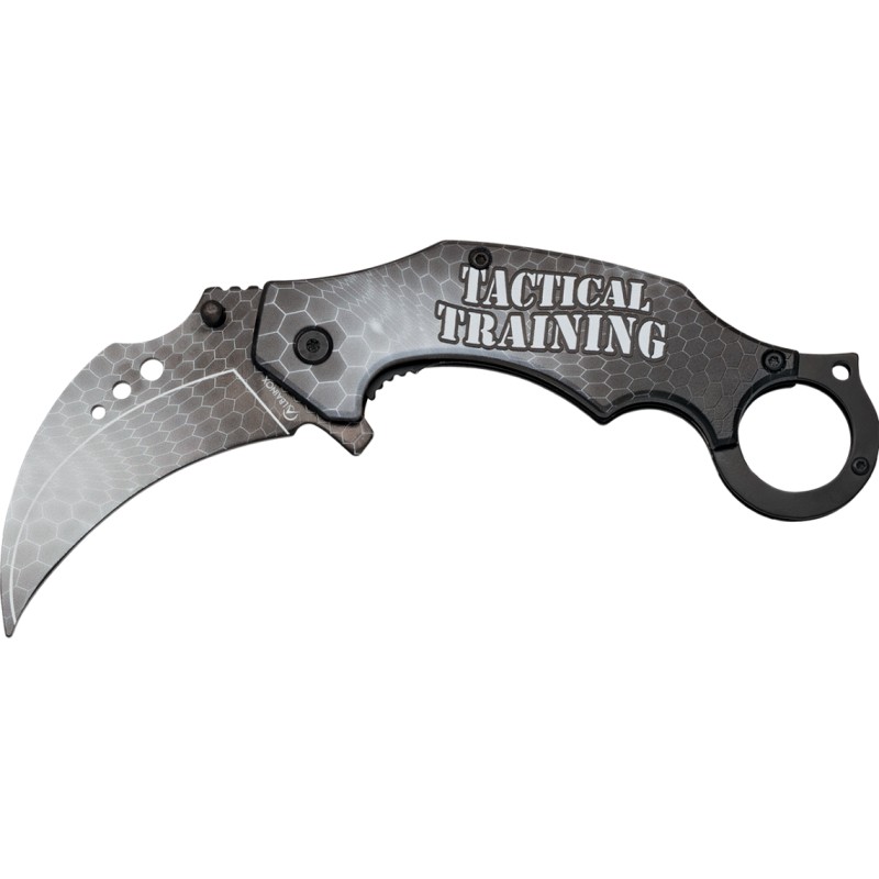 Navaja Karambit sin filo, uso entrenamiento.