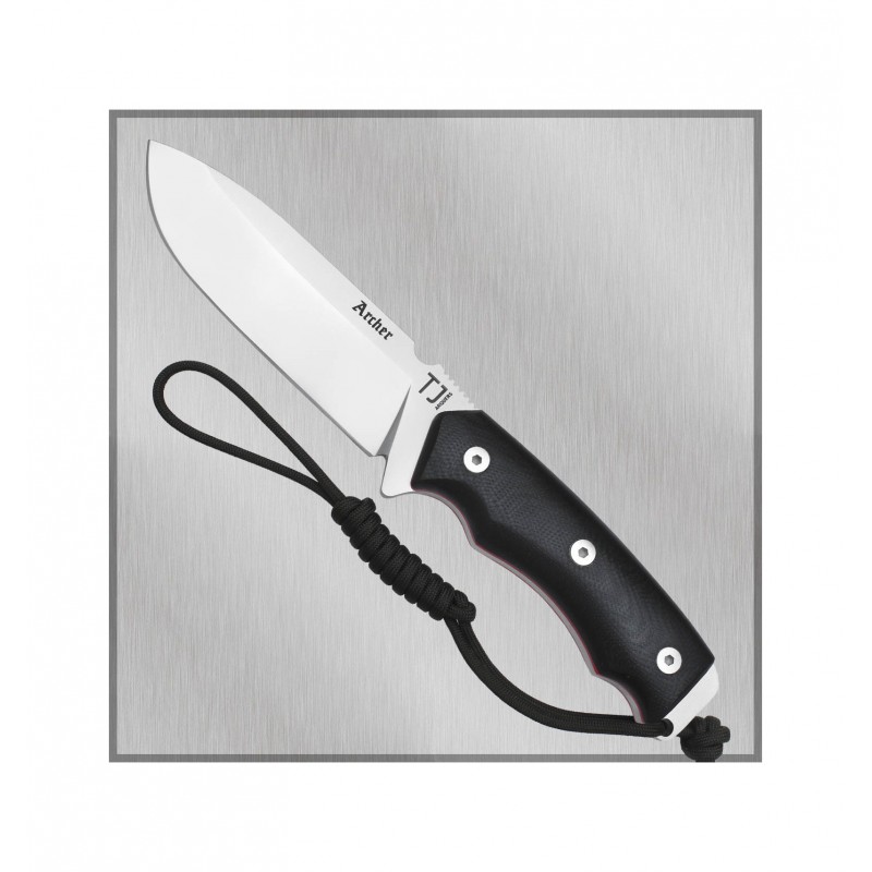Nieto lanza al mercado la serie de cuchillos Archer. El modelo Archer esta fabricado en una hoja enteriza de acero inoxidable MoVa 1.4116. con muesca en el lomo para raspar la barra de pedernal (fire steel). Empuñadura en G-10 con separadores de fibra de color rojo. Incluye funda de cuero de color negro multiposición.