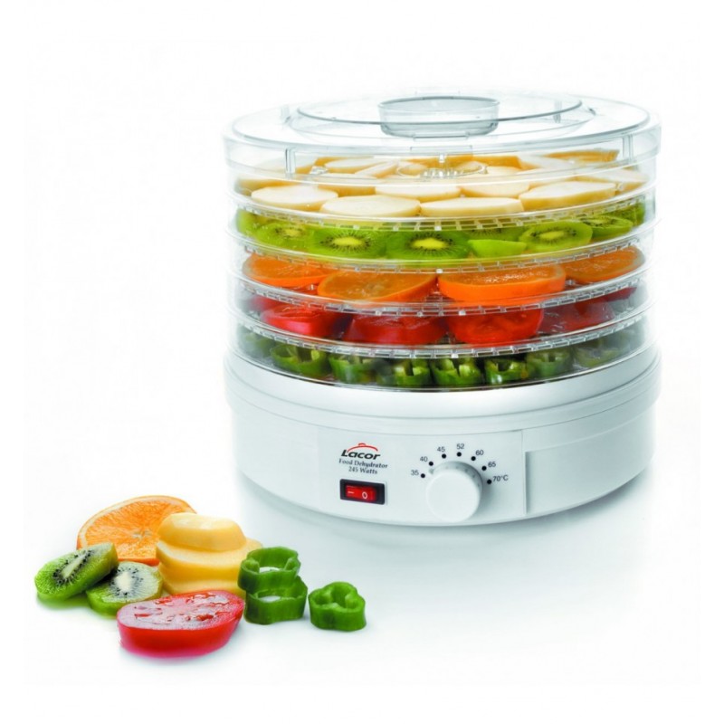 La deshidratación es una técnica para conservar los alimentos mediante la eliminación de la humedad. Dado que casi todos los alimentos poseen un cierto porcentaje de agua, los usos de la deshidratación son muy variados, y van desde las frutas y los vegetales (incluidas flores, hierbas aromáticas y hojas para infusión) hasta la carne, el pescado, la pasta fresca o las algas. Como extra, el deshidratador de alimentos 245w de Lacor puede devolver la textura crujiente a las galletas y contribuye a la fermentación de la masa del pan.