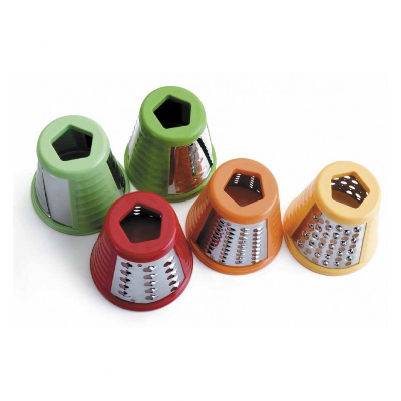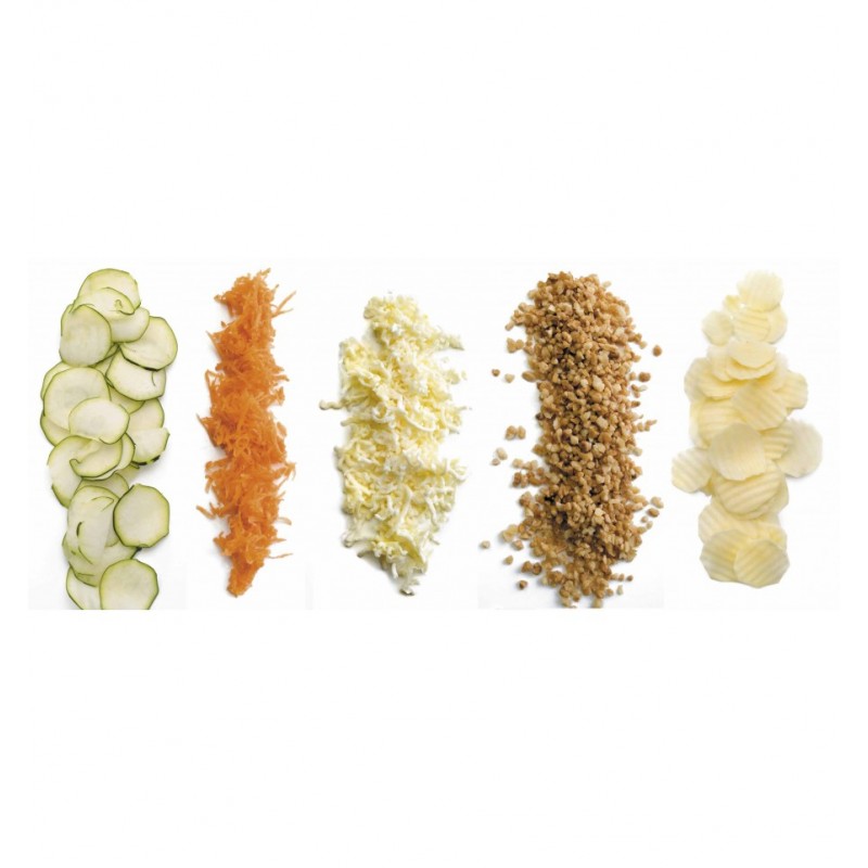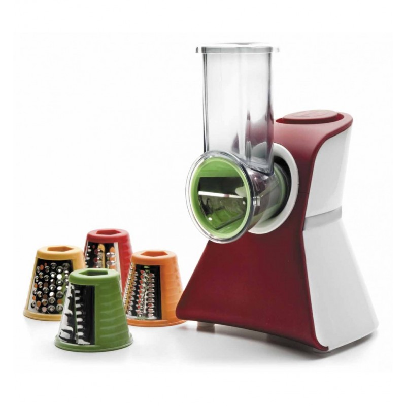 Corta vegetales eléctrico capaz de rayar y cortar. Ahorra espacio y tiempo. Fácil de usar y de limpiar. Todos los accesorios se guardan en el propio aparato. Tiene 5 funciones: rallar fino y grueso, cortar fino y grueso y rallar queso. Incluye: 5 cuchillas de corte. 150 vatios. Garantía: 2 años de garantía por defecto de fabricación.