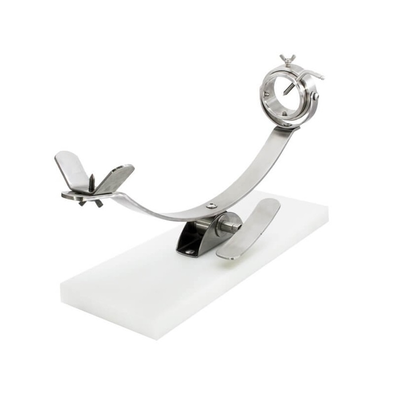 La característica más importante de este jamonero es que es basculante gracias al sistema balancín, el cual nos permite oscilar sobre la pieza central para modificar el ángulo de corte del jamón. Este sistema se basa en un cierre con palanca para colocar y fijar el jamón de forma rápida y sencilla en el ángulo deseado.
