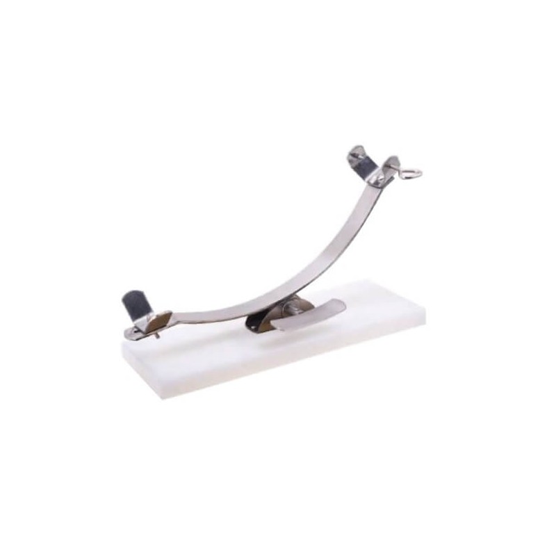 La característica principal de este jamonero es que es basculante gracias al sistema balancín, el cual nos permite oscilar sobre la pieza central para modificar el ángulo de corte del jamón. Este sistema se basa en un cierre con palanca para colocar y fijar el jamón de forma rápida y sencilla en el ángulo deseado.