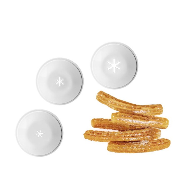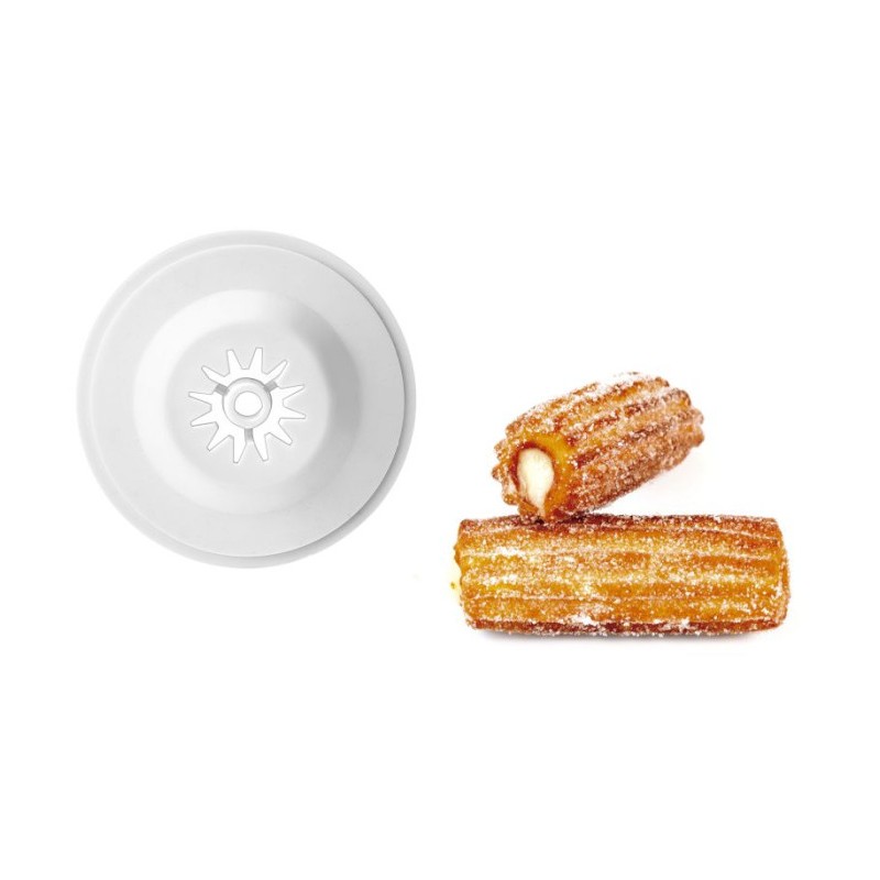 Nuevo modelo de churrera de plastico, diseñado por Ibili, modelo similar al tradicional y desaparecido modelo de Churrera de la marca Bernar, pero de mayor resistencia y capacidad que esta ultima. Tiene capacidad de 650 ml e incluye 12 discos para distintos modelos de churros, incluida una para el churro hueco.