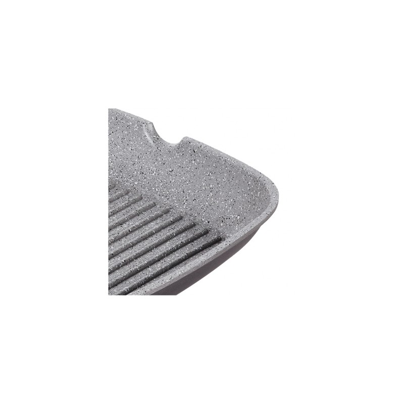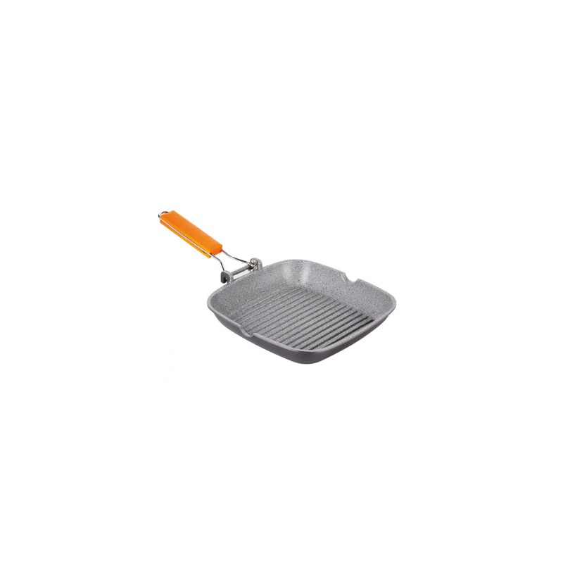 Grill Absolut Orange, de aluminio fundido indeformable con fondo de acero inoxidable protegido de 6 mm de espesor. Mango plegable soft touch de color naranja.