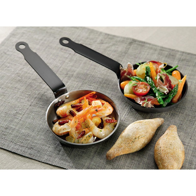 Sarten de hierro fundido con revestimiento antiadherente, con un diametro de 12 centimetros.