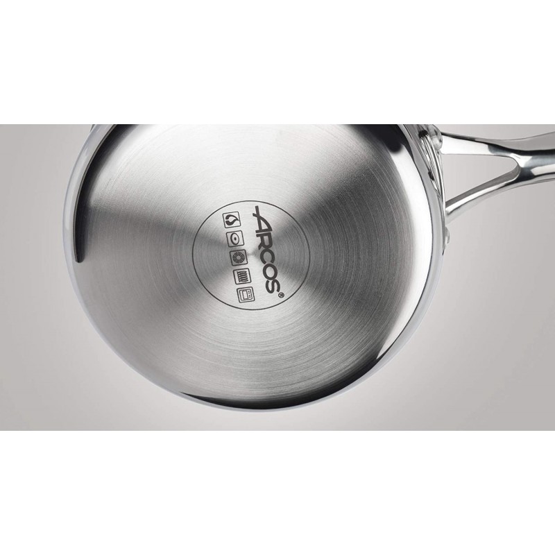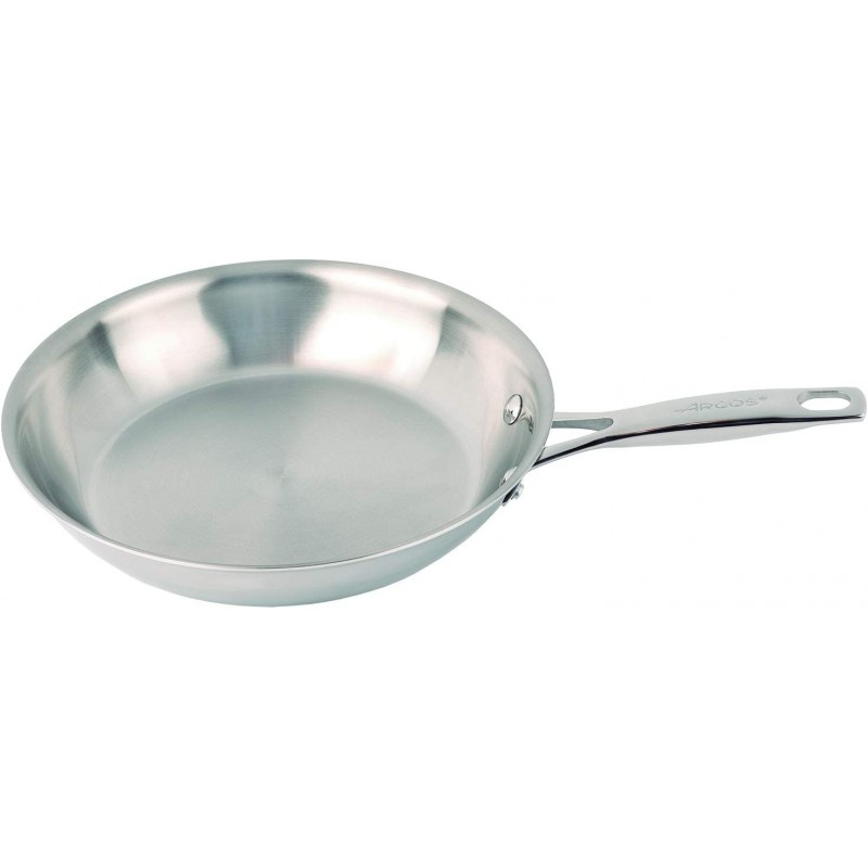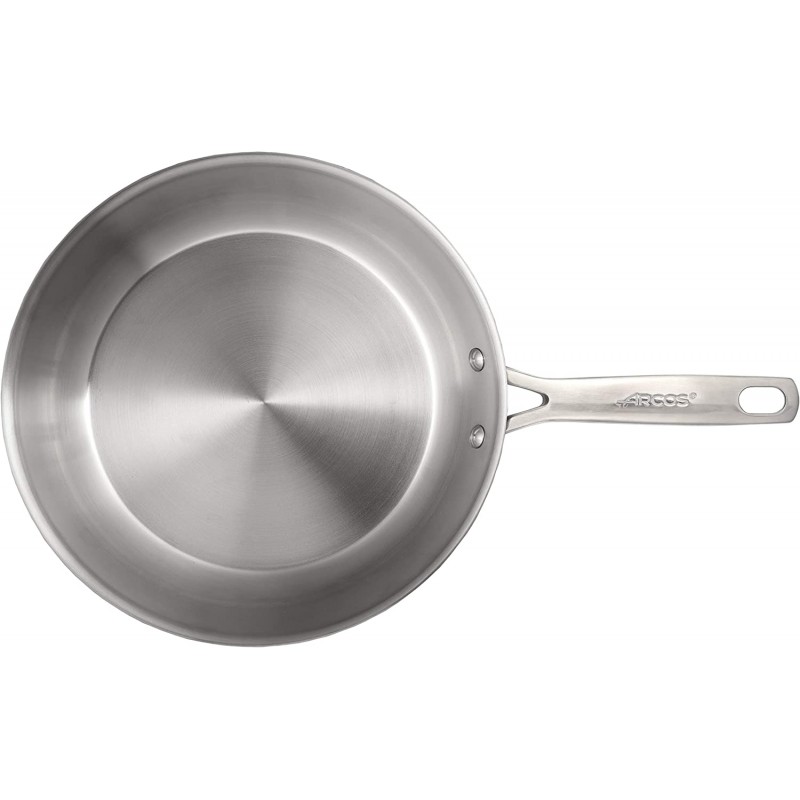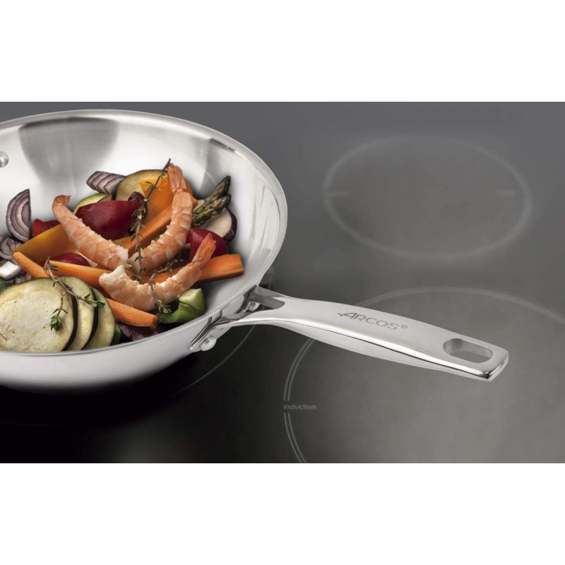 Sartenes Modelo Forza en acero inoxidable de la marca Arcos, triple fondo (inox+ aluminio +inox), mango en inox con gran cuerpo remachado.