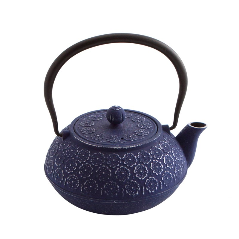 Tetera hierro fundido, color azul, 1 litro. Con filtro en inox