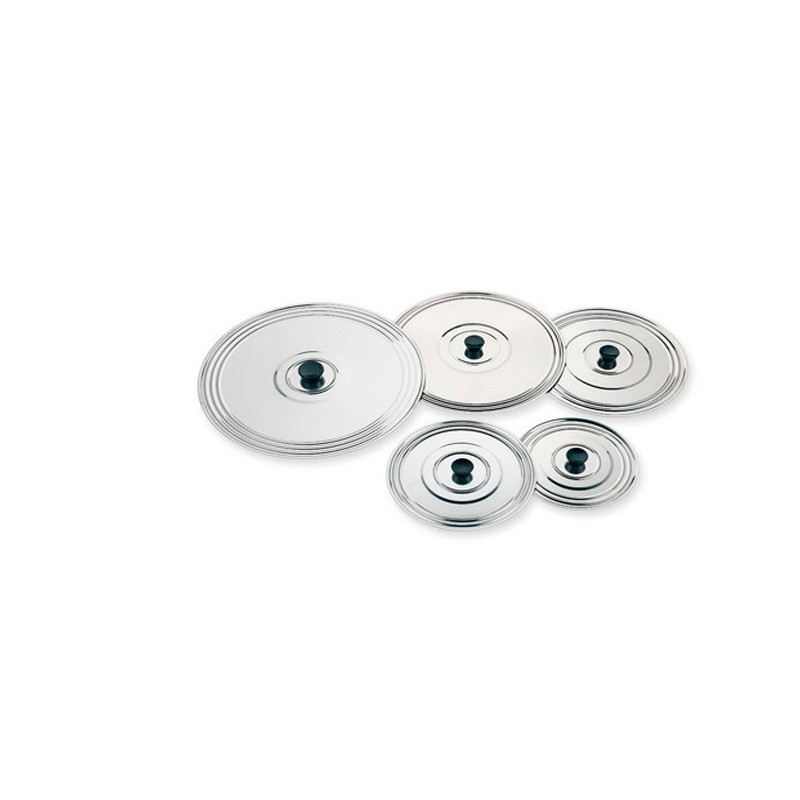 Tapa multiuso de 36 cts en acero inoxidable, sin agujeros. Válido para voltear tortillas de gran tamaño.