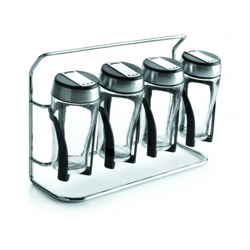 Las medidas del juego de especieros es de 22x8x15 cm y la capacidad de cada bote es de 100 ml