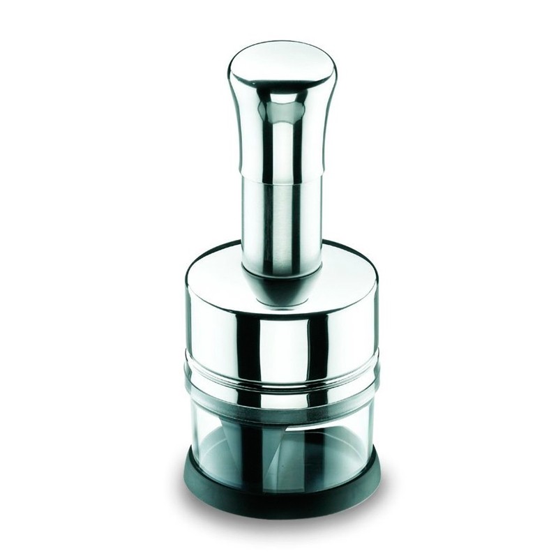 Este picador no solo picará las cebollas sin lágrimas, también ajos, verduras y hortalizas. Una forma de trabajar fácil: al presionar la parte superior las cuchillas interiores giran, picando los alimentos depositados en el recipiente; segura, para quienes no dominan el uso de los cuchillos; limpia: los alimentos picados quedan en el mismo recipiente, y una vez vacío puede ir al lavavajillas. Y muy rápida.