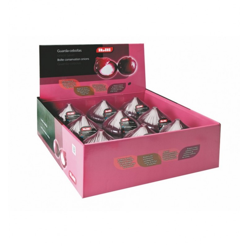 El guarda cebollas de Ibili permite introducir en su interior cebollas cortadas de forma que puedan refrigerarse sin recurrir a papel de aluminio o film plástico. Conserva la cebolla cortada de forma mucho más eficaz y evita que se transmitan malos olores al resto de los alimentos del frigorífico.