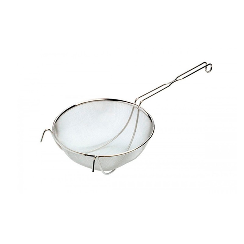 El colador reforzado doble de acero inoxidable 18/10, dispone de una malla que colará de manera eficiente cualquier alimento, obteniendo un líquido, salsa o crema fina y el resto de elementos por separado. Su doble refuerzo te permitirá colar elementos más pesados sin que se deforme excesivamente la malla.